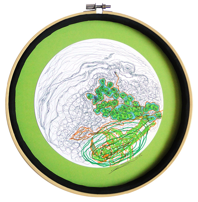 Chaque jour, je dessinais de manière intuitive à l'intérieur d'un cercle comme une sorte de méditation pour me recentrer. Dans cet exercice de lâcher-prise, je me laissais guider par mes mains et donnais carte-blanche à mon inconscient.