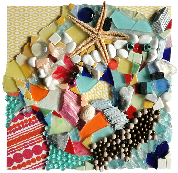 La Sirène dans le panier de crabe, mosaïque techniques mixtes, 20x20 cm, 2016 |