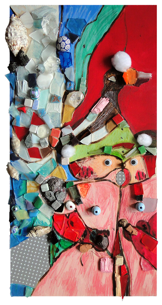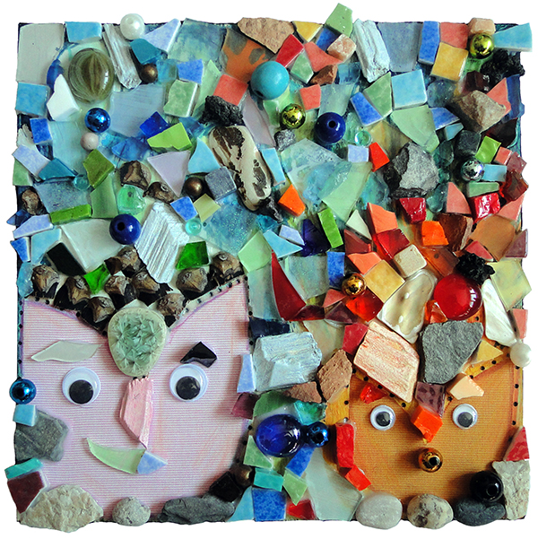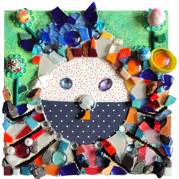 Coco à la noix, mosaïque techniques mixtes, 20x20 cm, 2016 |
