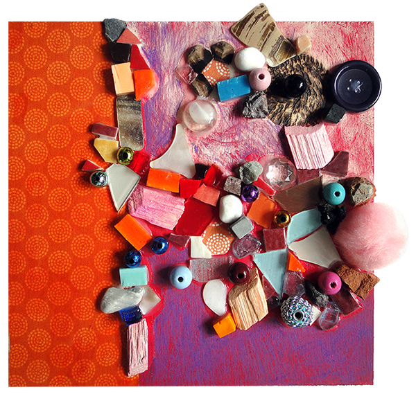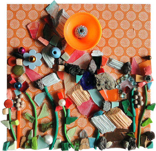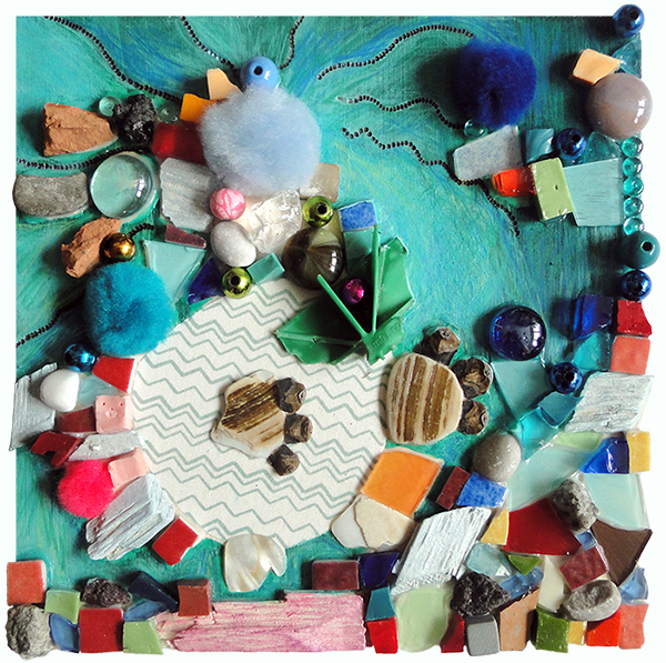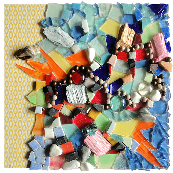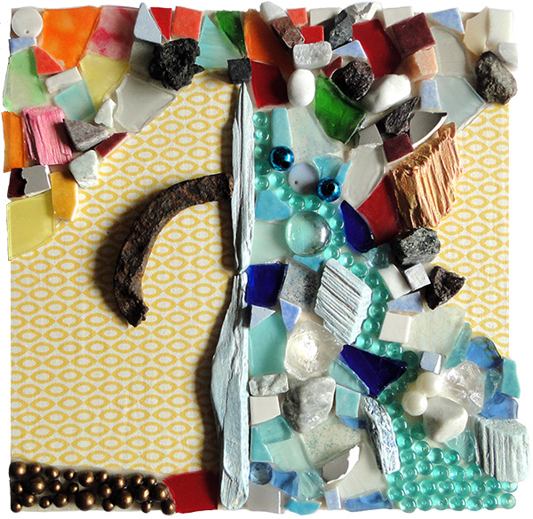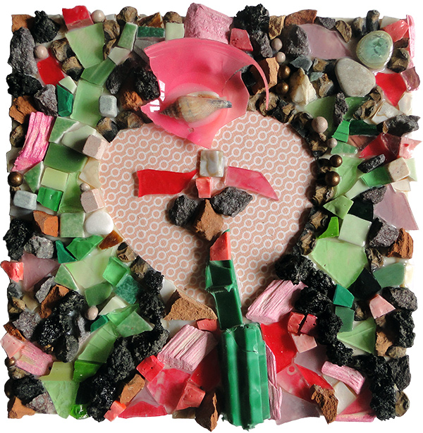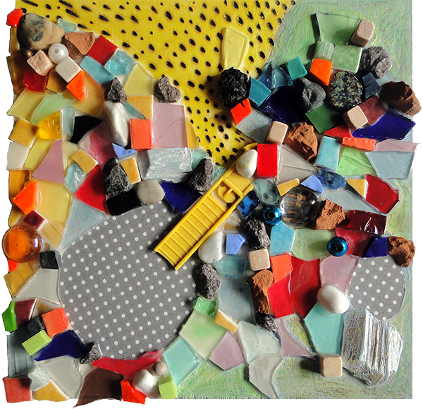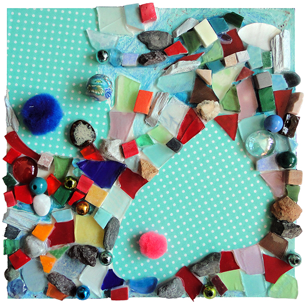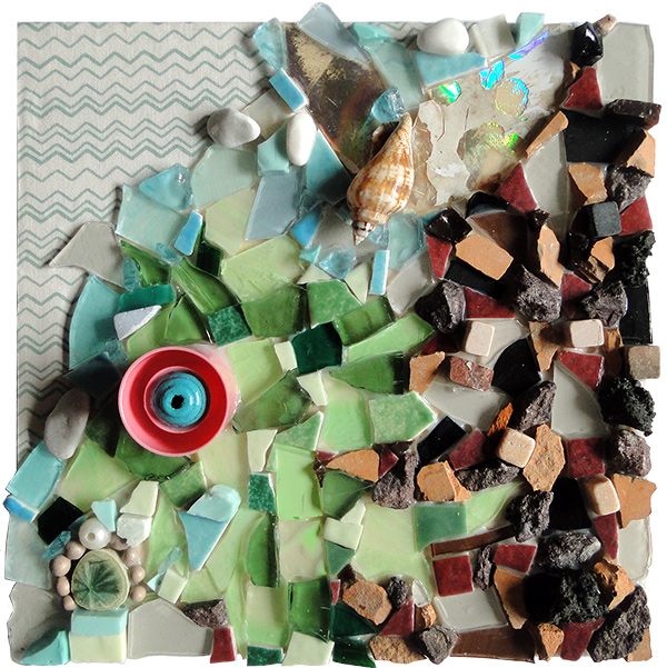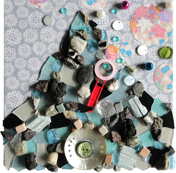 Le rocher au coeur léger, mosaïque techniques mixtes, 20x20 cm, 2016 |