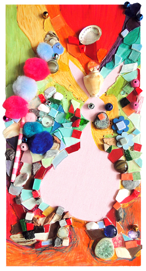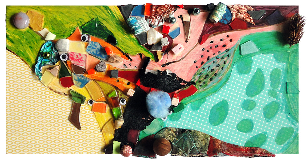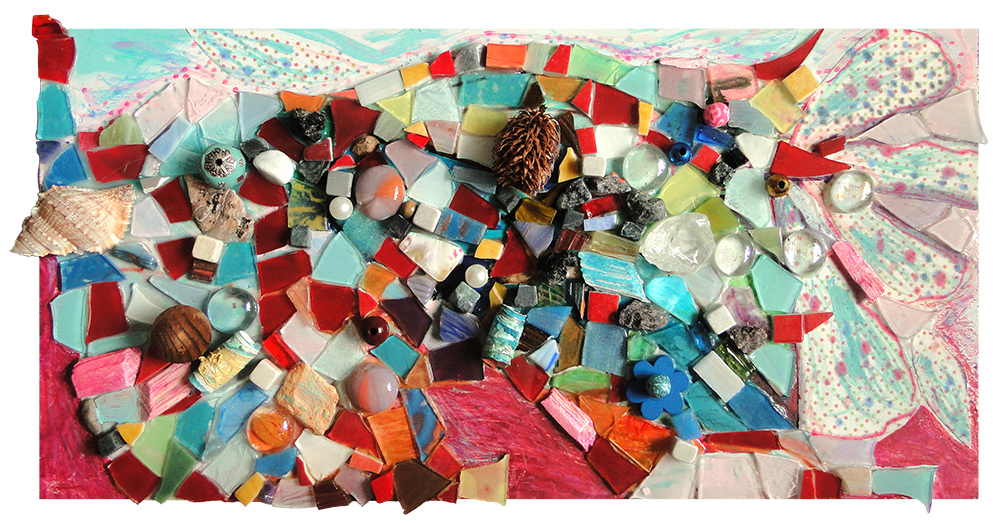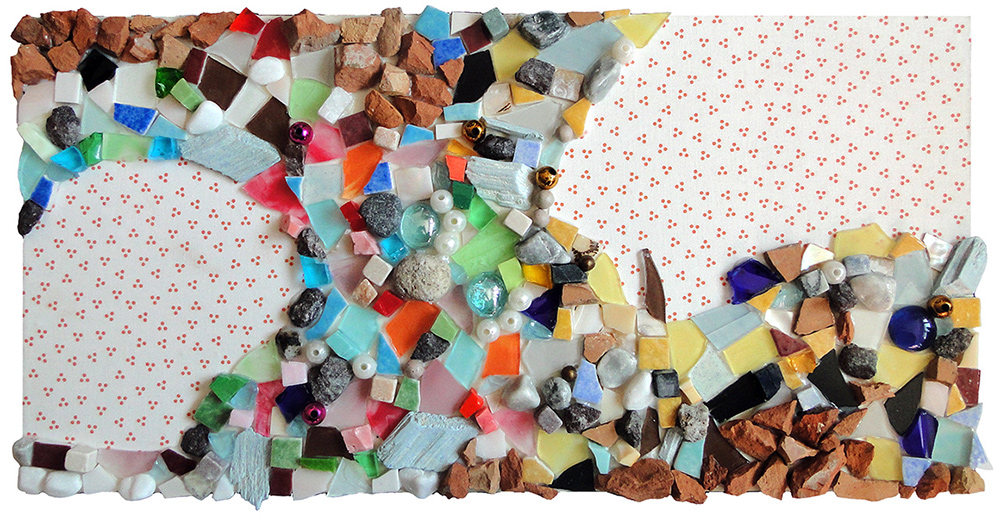 Le terrier des petites souris, mosaïque techniques mixtes, 20x40 cm, 2016 |